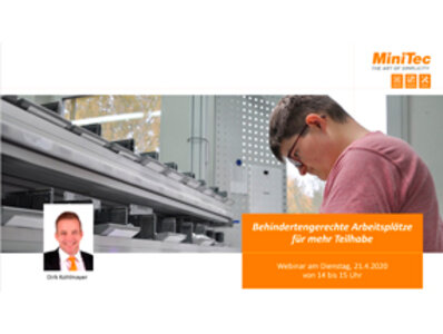 Ebenso kann der Werker mit Grafiken, Fotos oder Videos Schritt für Schritt durch den Arbeitsprozess geleitet werden. Erhalten Sie in diesem Online-Seminar einen kompakten Überblick zu maßgeschneiderten Arbeitsplätzen für behinderte Menschen aus dem Hause MiniTec, und wie Sie diese erfolgreich in Ihrer Werkstätte einsetzen können.
