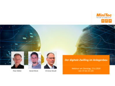 Im Zeitalter von Industrie 4.0. setzt MiniTec bei Kundenprojekten deshalb immer öfter auf das Konzept des „digitalen Zwillings“. Dabei handelt es sich um das virtuelle Pendant einer zu erstellenden Anlage, dem sämtliche physikalischen, mechanischen und elektronischen Eigenschaften der realen Maschine hinterlegt sind.
