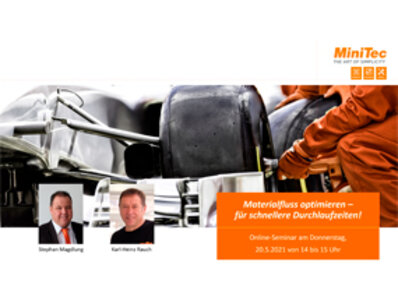 Erhalten Sie jetzt in unserem Online-Seminar einen praxisorientierten Überblick, wie Sie Ihren innerbetrieblichen Materialfluss mit MiniTec verbessern. Erfahren Sie Näheres zur Vorgehensweise und lernen Sie die zahlreichen MiniTec-Lösungen und Komponenten kennen, die hier zum Einsatz kommen können. Das beginnt bei der ergonomischen Ausgestaltung des Arbeitsplatzes und reicht über Kanban-Systeme wie das flexible FRS bis zu passenden Fördertechniken.